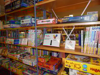 Über 150 Brettspiele, unter anderem Klassiker wie "Lotti Karotti" oder "Risiko: Herr der Ringe", warten darauf, entweder in der Bibliothek oder bei euch zuhause gespielt zu werden.