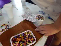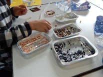 Mit viel Hingabe wurden Socken ausgestopft und unter Mithilfe der Kinder mit Stiel versehen. Fleißig wurden Augen, Ohren und Geschirre geschnibbelt und von den Mitarbeitern mit der