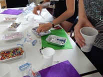 Natürlich wurde nicht nur gespielt (wenn auch fast und immer mit riesiger Begeisterung!), sondern auch fröhlich von unserem bunten Buffet gegessen und eifrig über Foliierklötze