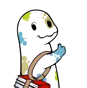 Und dieser charmante, kleine Kerl ist übrigens das Maskottchen der Bibliothek: Leopold, der Leselurch!